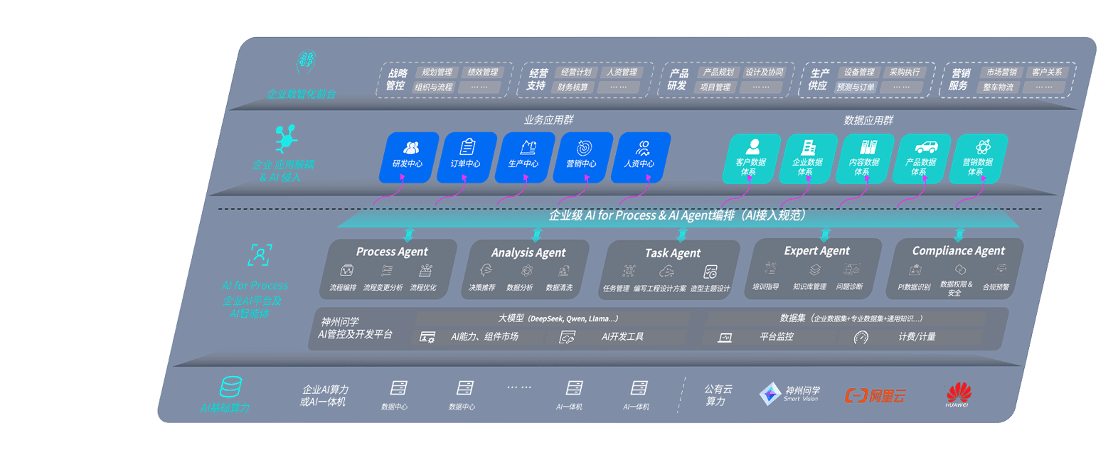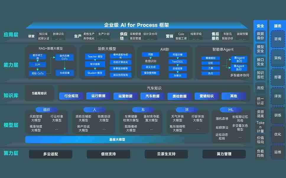 豪门国际问学智车解决方案是一套基于AI技术的汽车行业智能化系统,,,覆盖从底层算力到顶层AI应用的全栈方案。。。方案由算力层、、、、模型层和应用层组成:算力层,,,,方案支持多种一体机配置,,具备云端灵活部署、、、、多云适配以及动态优化计算资源的能力;模型层,,,,豪门国际问学平台版提供了企业级AI应用一站式构建与管理平台,,,支持基于后训练强化技术的汽车企业专属模型的训练、、、评测和运营;应用层,,,,豪门国际问学DeepSeek版提供包括超级员工、、智能招采、、、、智能营销、、智能客服、、AI for BI等一系列解决方案,,,,可助力汽车行业实现数字化转型,,,让管理更智能、、响应更敏捷。。。。